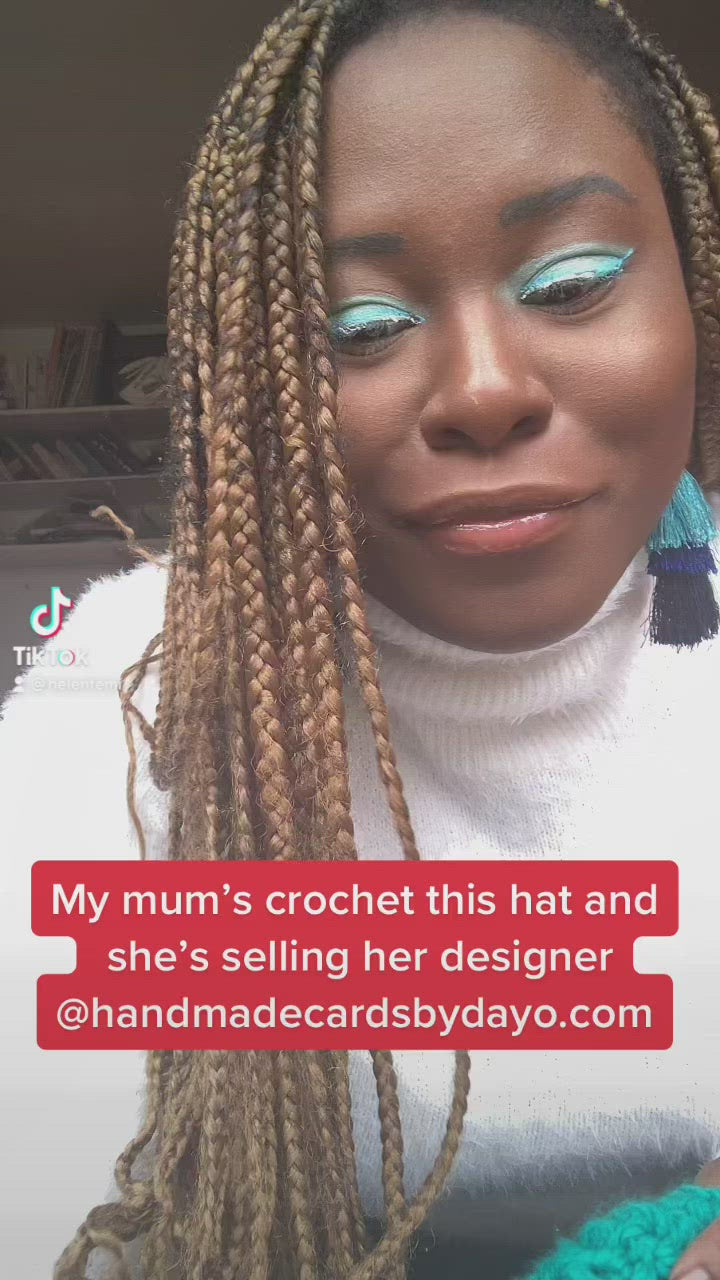 Signature handmade crocheted beret hat, finished with by Dayo. Perfect for every day!