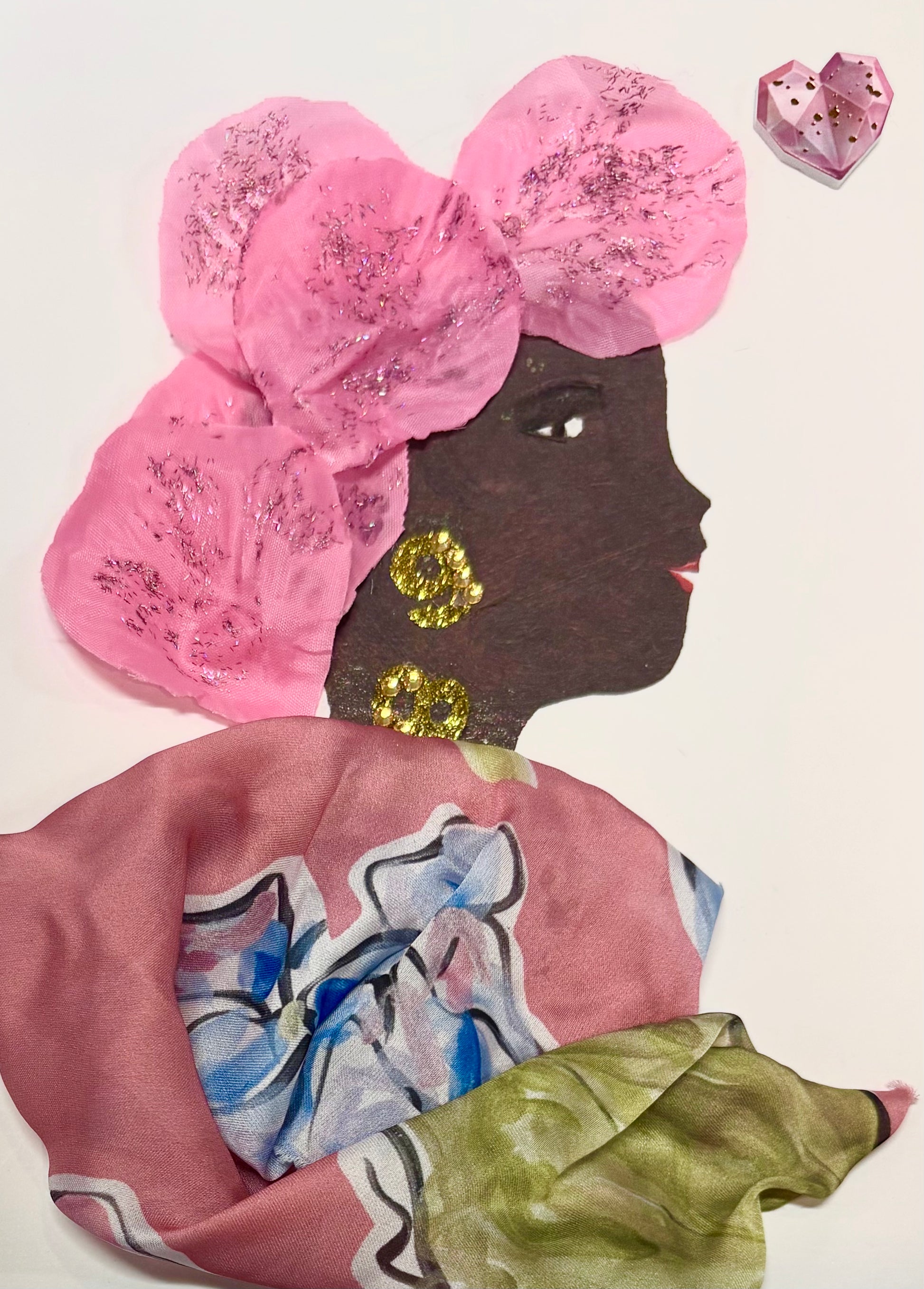 This unique card is delightfully handmade featuring Pink Pippa. She wears bright pink petals as her hat and a multicoloured floral blouse to match.