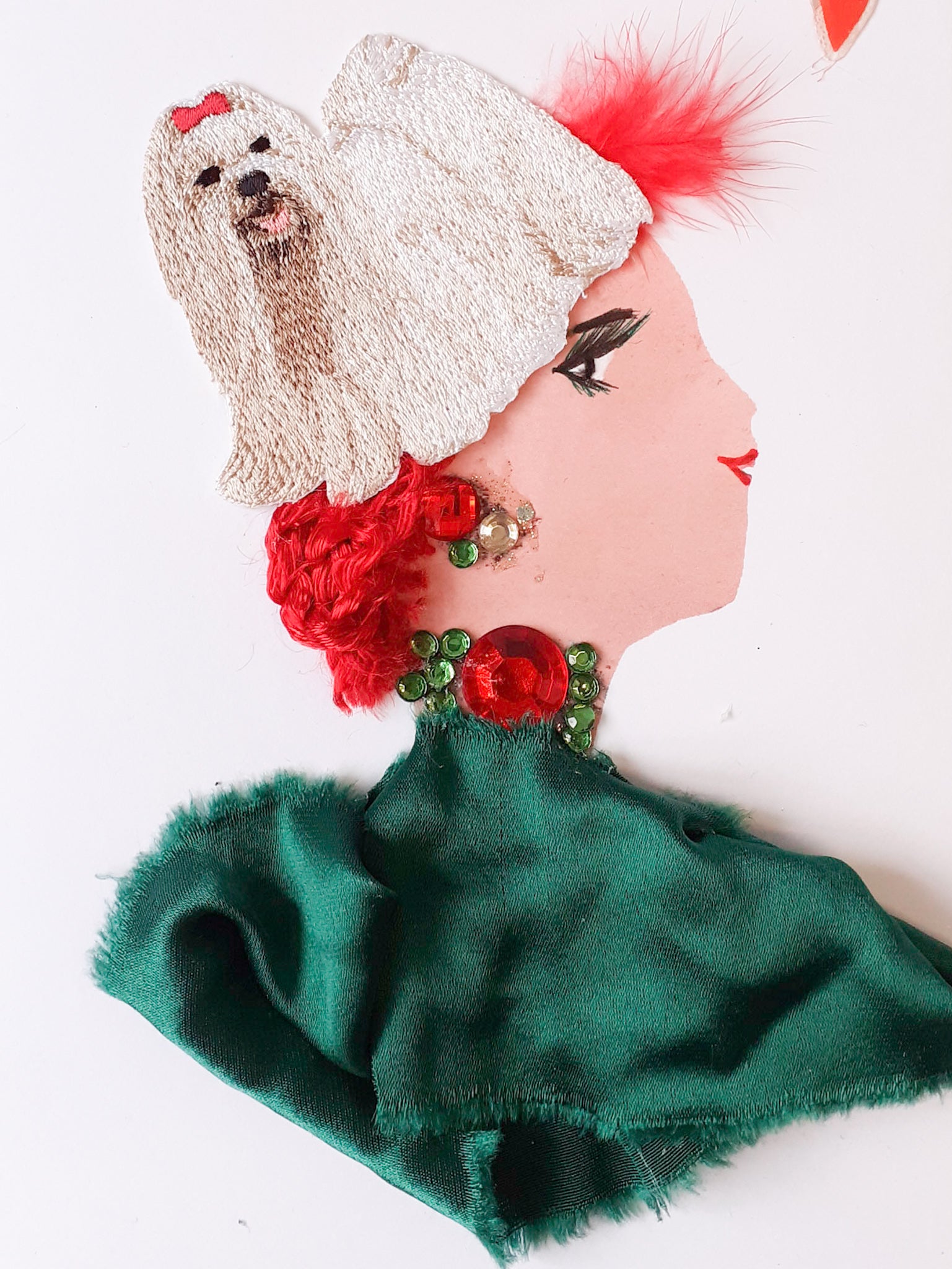 Dollita Doginton has a fancy green dress with a cute dog hat covering her messy red hair. Her beautiful ruby necklace sparkles like a moonlight star.