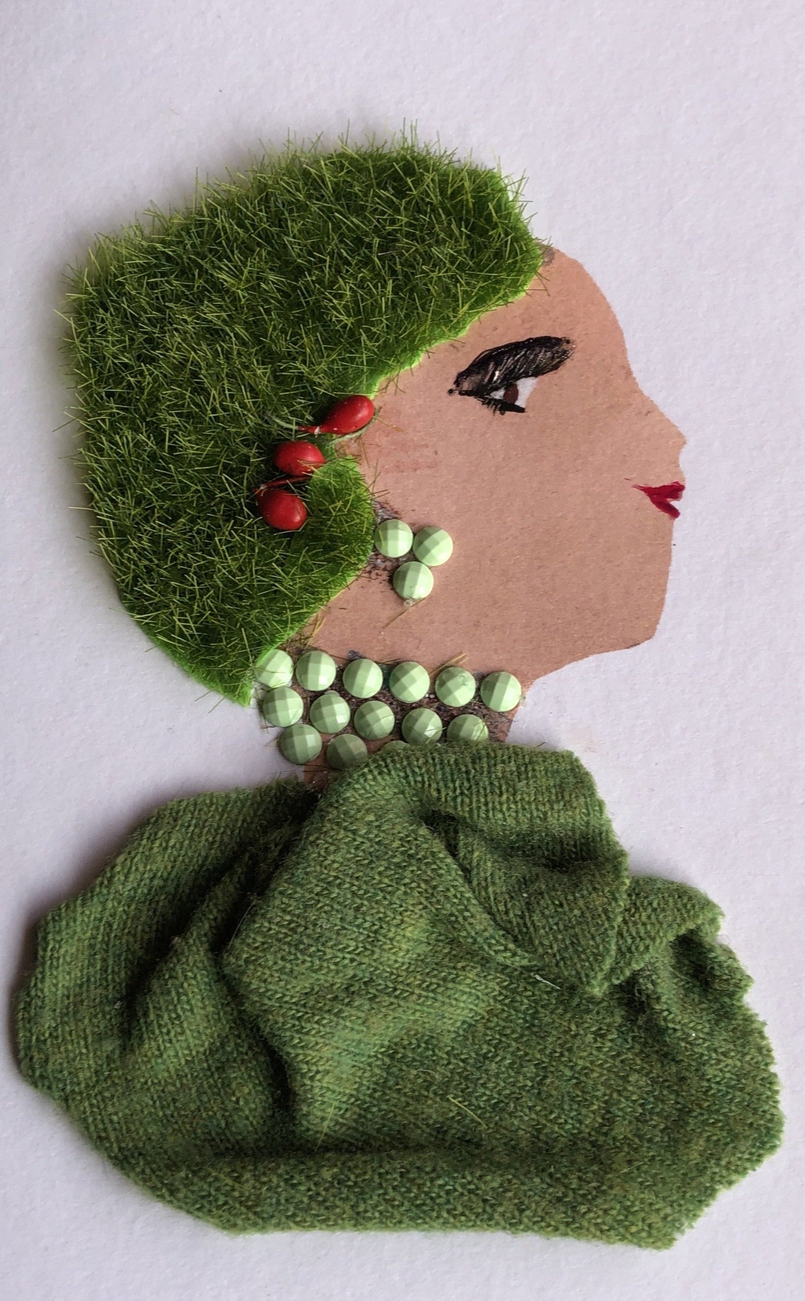 Green Park Princess has a grassy green hat. She is also wearing her mint green matching earrings and necklace.