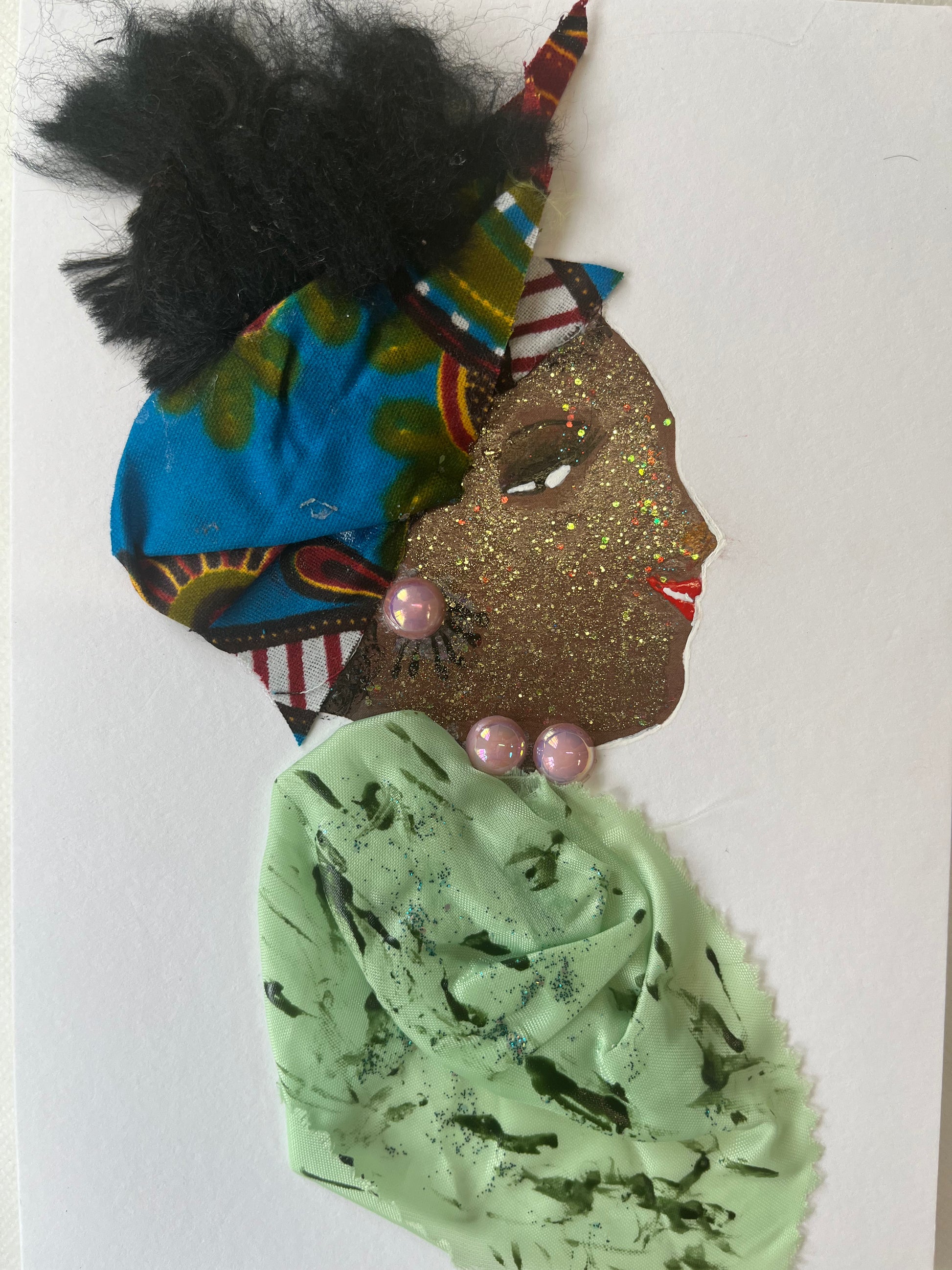 Wearing Ankara Headwrap with a touch of glitter on her face