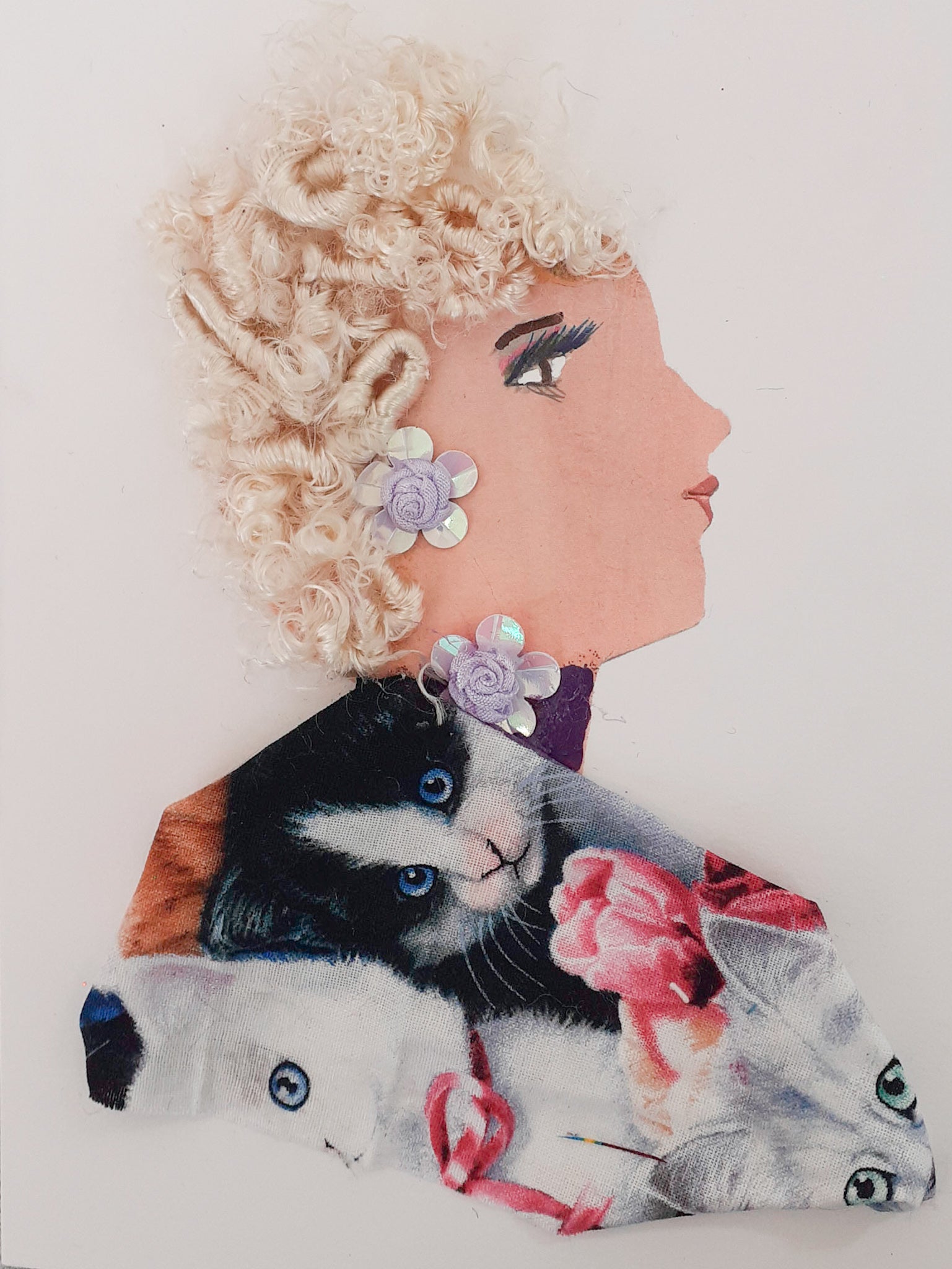 Cathy Kitten is wearing a cute cat dress with a silver diamond necklace and white hair.