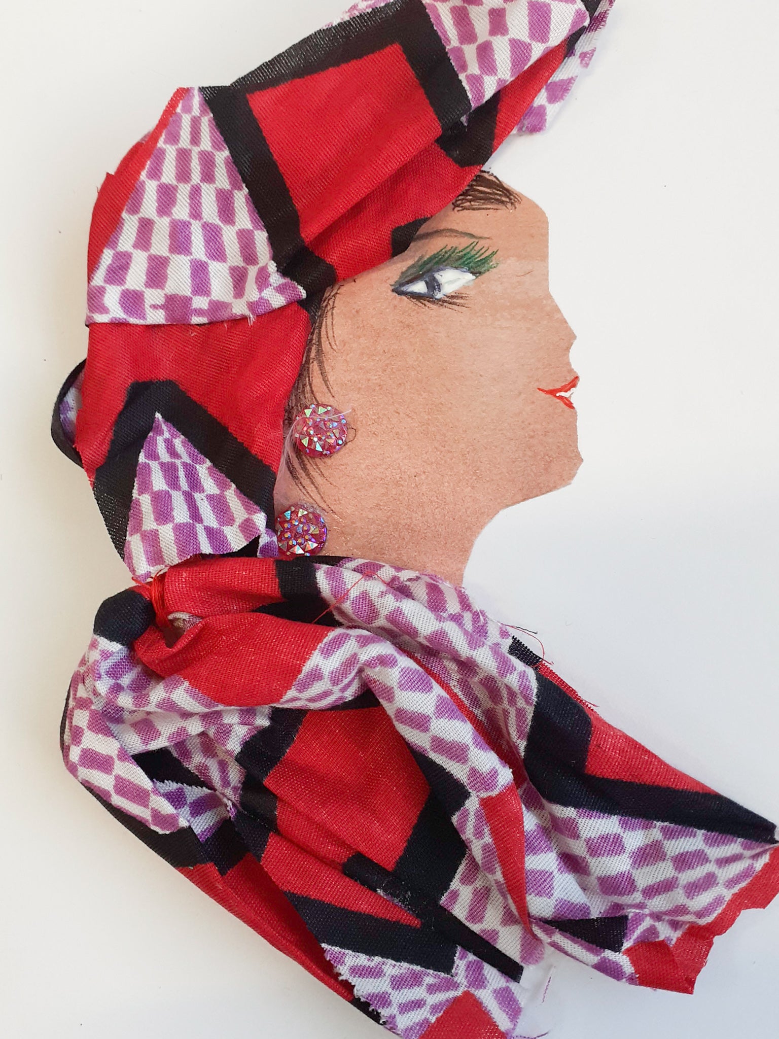 Tori Star is wearing a red and white patterned dress with a matching headpiece. She also has pink earrings to tie the whole outfit together.